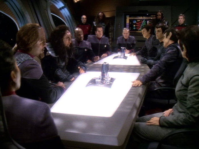 - Bei einem Überraschungsangriff der Breen wird das Hauptquartier der Sternenflotte fast vollständig zerstört.