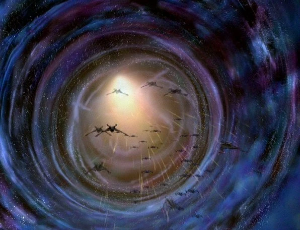 Die Flotte des Dominions fliegt durch das Wurmloch