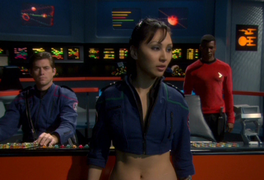 Auf dem Flug zum Kampfgebiet, in dem die DEFIANT der AVENGER noch rechtzeitig zu Hilfe eilt, und auf dem anschließenden Weg zur Erde, unterstützt sie Archer in jeder Hinsicht, bis sie dessen Leibwächter Mayweather bestechen kann.