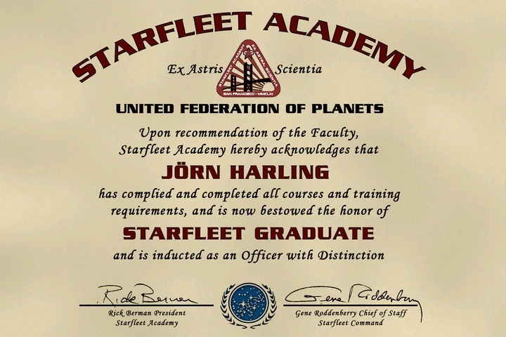 Offizierspatent, ausgestellt an der Akademie der Sternenflotte: