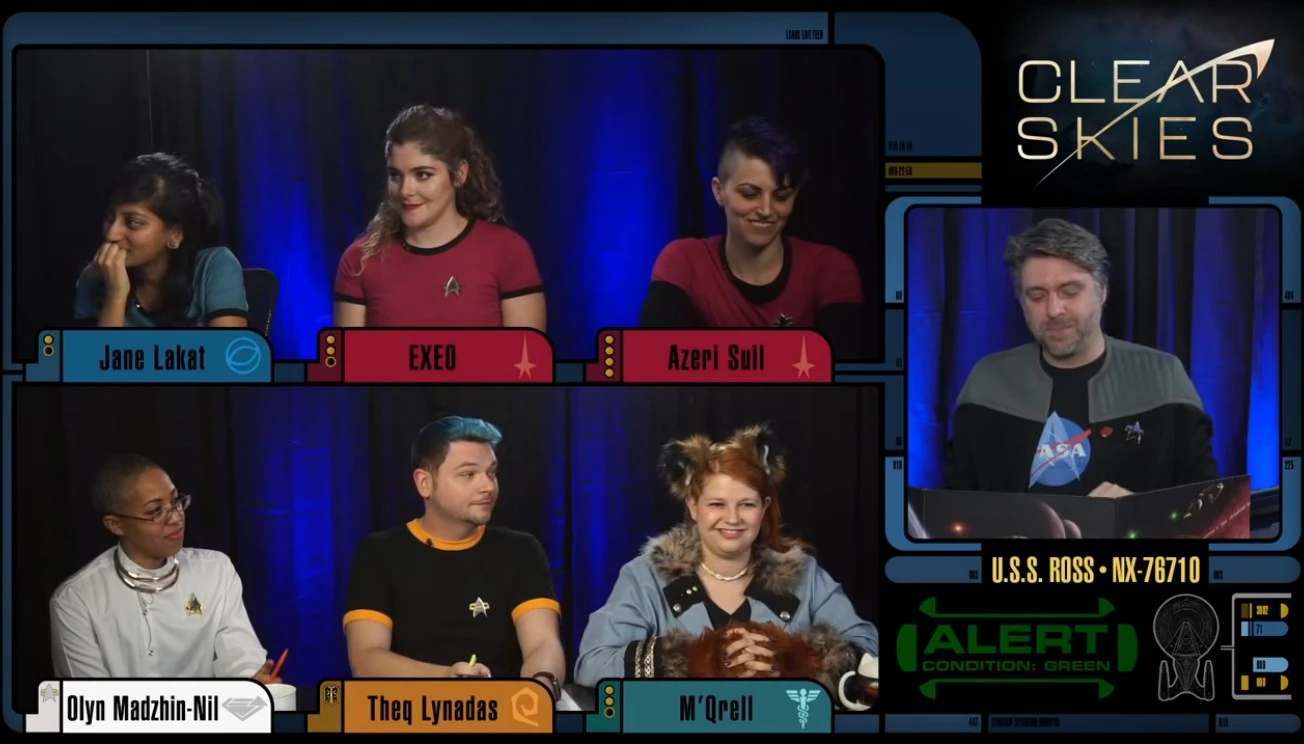 Clear Skies is a webseries from the Streampunks group, focusing on actual play sessions of a Star Trek Adventures campaign. The series premiered on January 13, 2020, on the QueueTimes channel on Twitch, with videos uploaded to YouTube later in the week. The first episode was simply titled "Prologue".