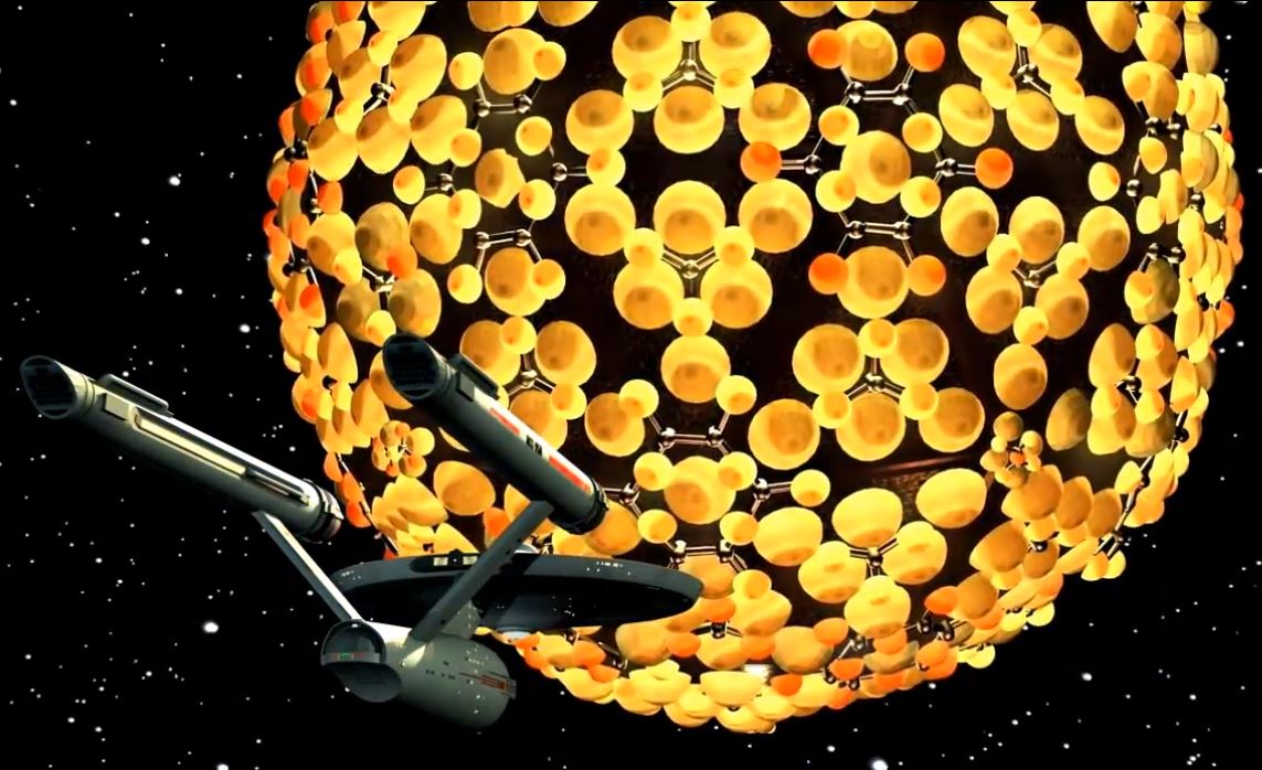 Shortly after destroying the marker buoy, the Enterprise encountered the massive flagship of the First Federation, the Fesarius. Charged with violating their territory, the Enterprise and its crew were threatened with destruction. However, after a series of bluffs and counter-bluffs, it was discovered that the encounter had only been a test, designed by the Fesarius' captain, Balok. A cultural exchange was proposed, with Enterprise crewman Dave Bailey remaining on board the Fesarius. (TOS: "The Corbomite Maneuver")