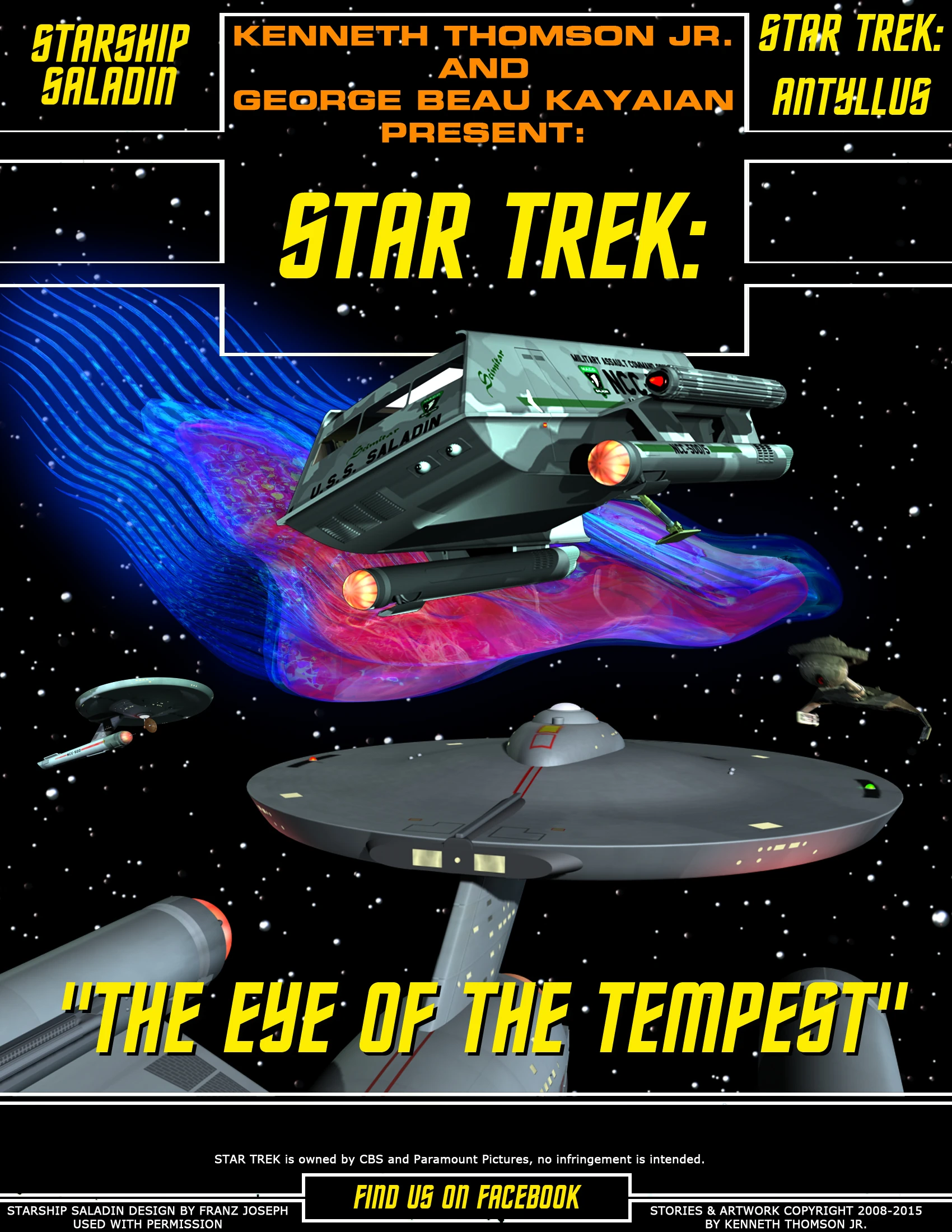 Star Trek: Eye of the Tempest is a fan film by Starship Saladin and Star Trek: Antyllus. Released on September 6th, 2015, the story features the crew of the USS Saladin's shuttlecraft Scimitar on a rescue mission that ends up going very wrong. The USS Antyllus comes to their aid and together they must free the shuttlecraft from a wayward space creature and a pocket dimension that holds the shuttlecraft in phased space.