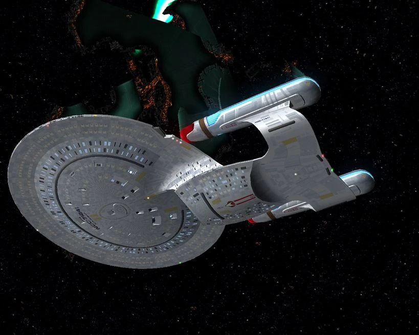 Built at the height of war, she lacked many of the luxurious amenities of her older sisters such as the former Enterprise-D and Yamato. In place of those amenities were enhanced weapons and defensive systems. Some unfinished areas of the hull were outfitted with ablative hull armor. These wartime vessels were easily discerned from the pre- and post-war Galaxys by the somewhat darker armored regions along the spine. She recently went under refit to gain some of the facilities that she lacked. She was also equipped with a complete space fighter wing and their proper operations facilities, under an expeditionary program known as the Space Control Ship Project. (Star Trek: New Order)