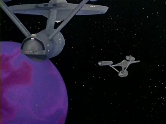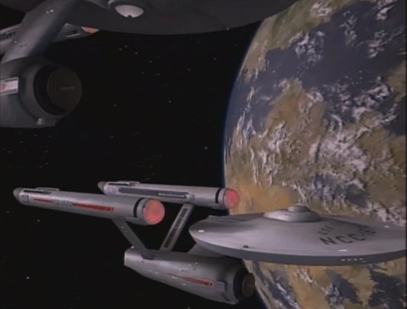 Original footage of the Exeter in orbit of Omega IV