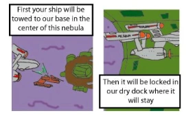 The Eagle's attack group was able to bate a Klingon reinforcement squad into a nearby nebula. The ambush was a success due to the federation ships using satellites to assist their aiming and compensating for the nebula's effect. Unknown to Banner his Mirror universe counterpart was leading the attack group. in a shock to both Banners, Admiral Shrelic (mirror) of the ISS Emperor appeared. He announced he was on a mission to apprehend Banner's counterpart.