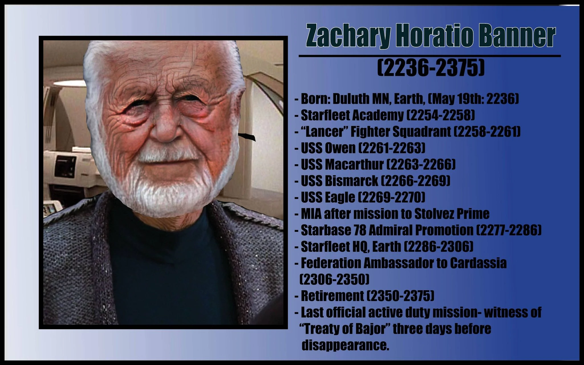 Zachary Horatio Banner was the former commanding officer of the USS Eagle. (Star Trek: Eagle)
