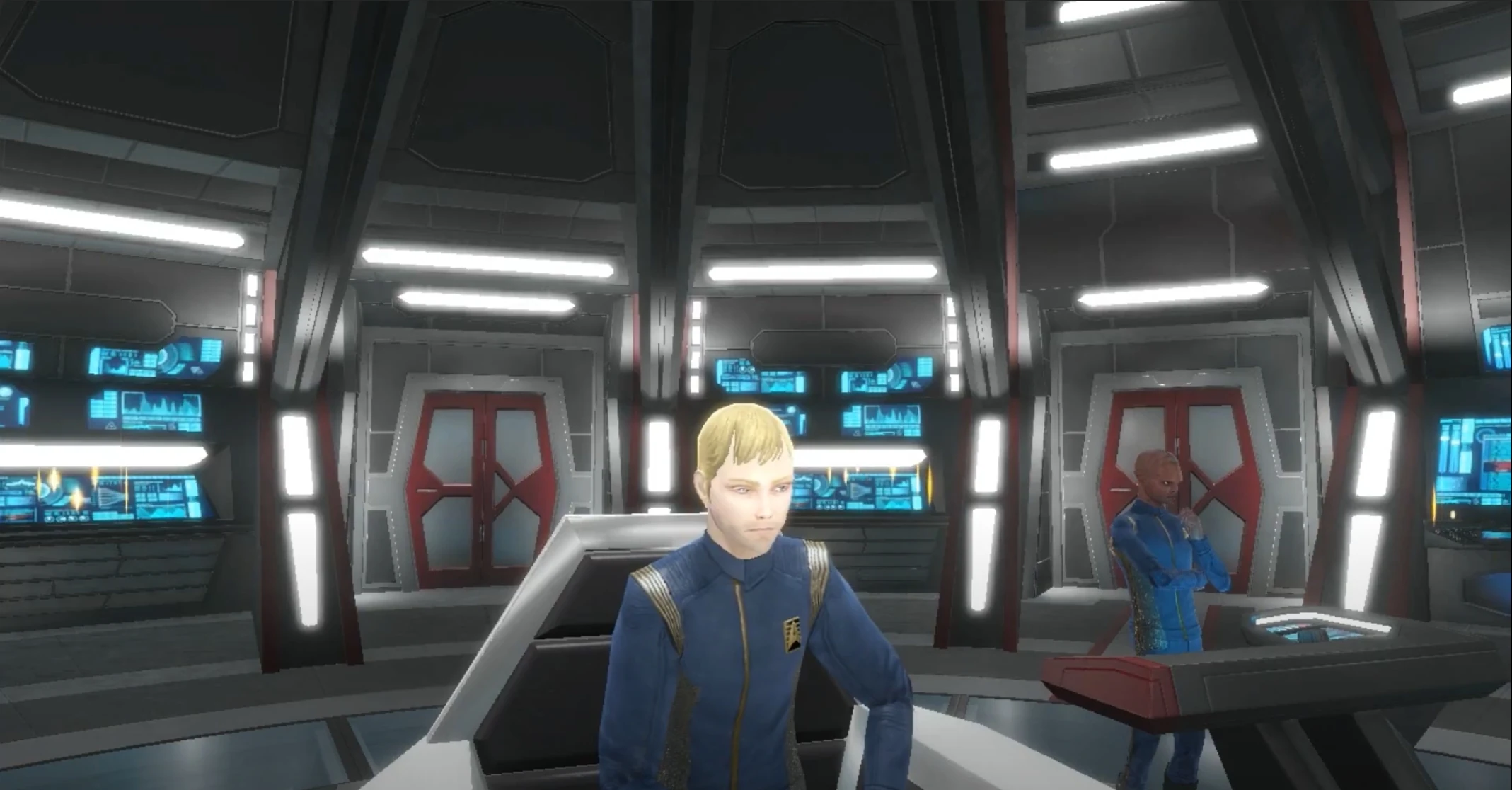 Once there Banner went to a tavern to find out what had happened, to his surprise he was surrounded by Starfleet uniforms he didn't recognize. There a Starfleet officer who called himself "Johann Auen" introduced himself.